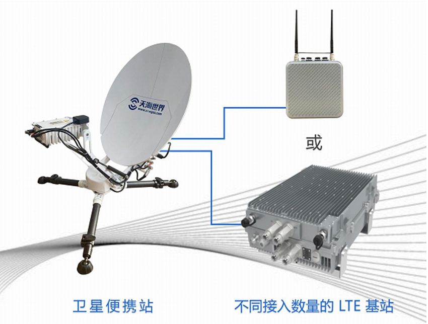 分體式衛星移動基站,衛星天線傳輸系統負責衛星網絡接入,LTE基站負責及移動信號盲區的覆蓋。根據應用場景需求,衛星天線部分可配置便攜站、固定站、車載動中通、船載動中通等多種形式。天海世界與國內多個衛星系統運營資源方保持深度穩定合作,采用高通量Ku/Ka衛星資源,使系統所需高速率衛星寬帶網絡擁有可靠保障。LTE基站部分根據用戶接入數量需求配置不同容量的移動基站。