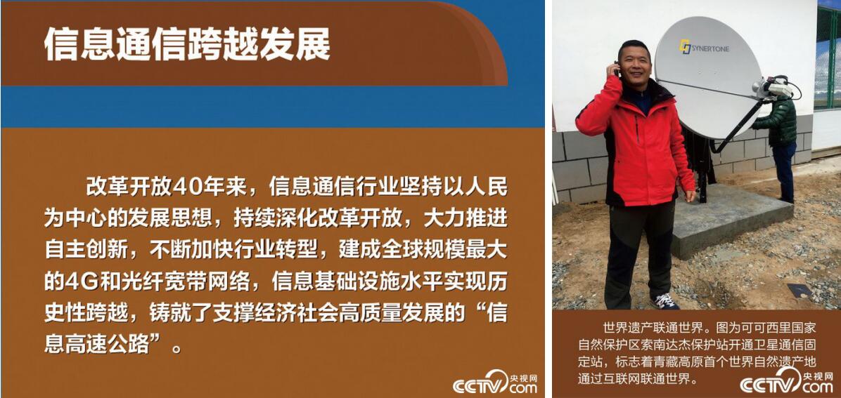 在“大國氣象”展區(qū)有這樣一張圖片——標(biāo)注“世界遺產(chǎn)聯(lián)通世界。圖為可可西里國家級(jí)自然保護(hù)區(qū)索南達(dá)杰保護(hù)站開通衛(wèi)星通信固定站,標(biāo)志著青藏高原首個(gè)世界自然遺產(chǎn)地通過互聯(lián)網(wǎng)聯(lián)通世界”。這是2017年8月由中國電信集團(tuán)衛(wèi)星通信有限公司、深圳天海世界衛(wèi)星通信科技有限公司以及協(xié)同衛(wèi)星通信(深圳)有限公司聯(lián)合捐贈(zèng)和援建的衛(wèi)星通信固定站項(xiàng)目。