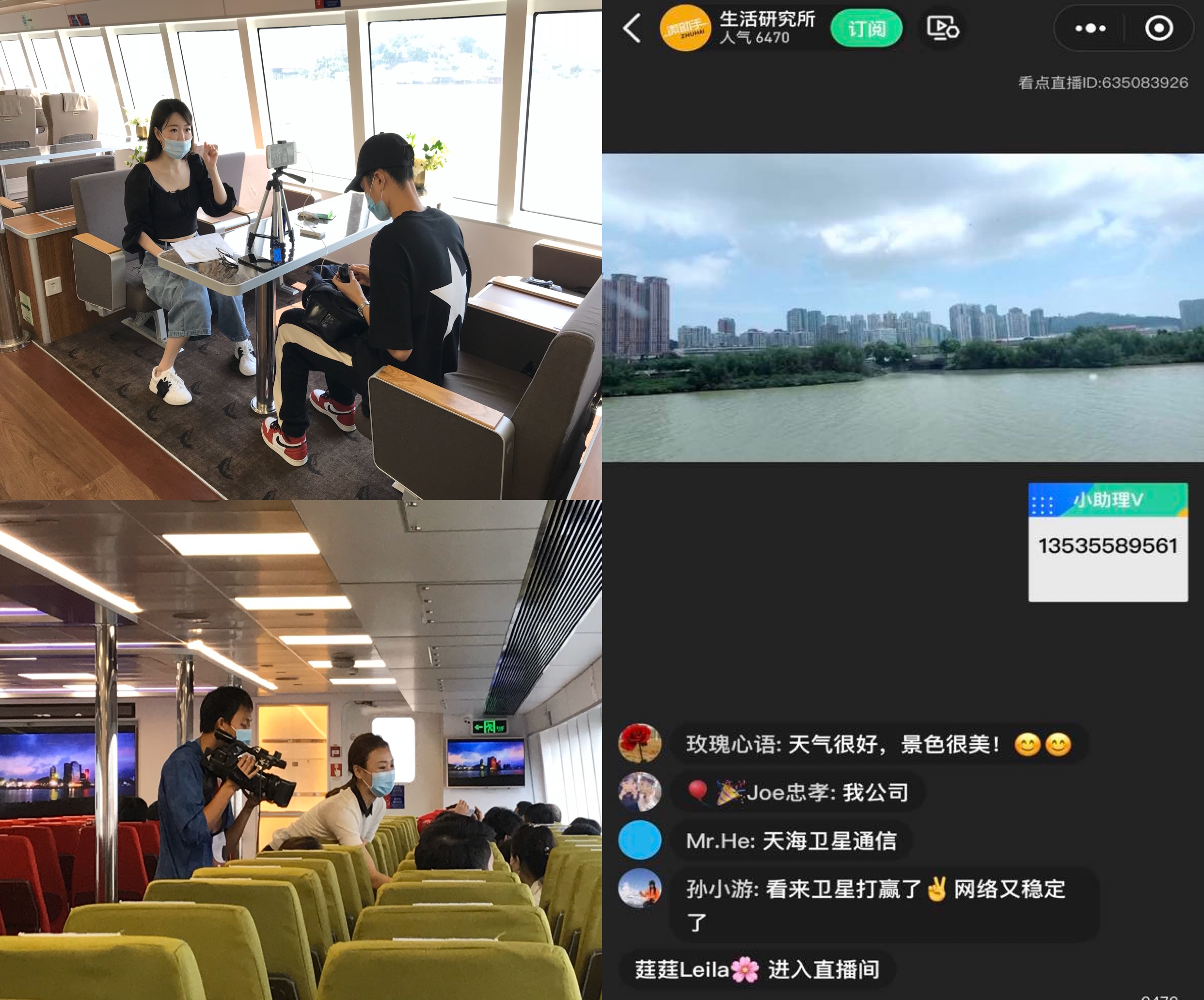 新航線開通吸引了大量媒體的關(guān)注,首航航班上就有深圳衛(wèi)視、鳳凰生活、香港商報等媒體的現(xiàn)場采訪,也有KOL主播全程直播。由于航程中傳統(tǒng)通信網(wǎng)絡(luò)的不穩(wěn)定,天海世界根據(jù)直播需求進行了全程衛(wèi)星互聯(lián)網(wǎng)技術(shù)支持和保障,在保證直播順利進行的同時讓乘客也可以感受穩(wěn)定流暢的衛(wèi)星互聯(lián)網(wǎng)體驗。